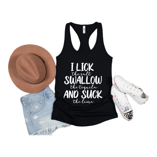 I Lick the salt Swallow the tequila and Suck the lime Tank Top, Summer Shirt, Racerback Tank Top
